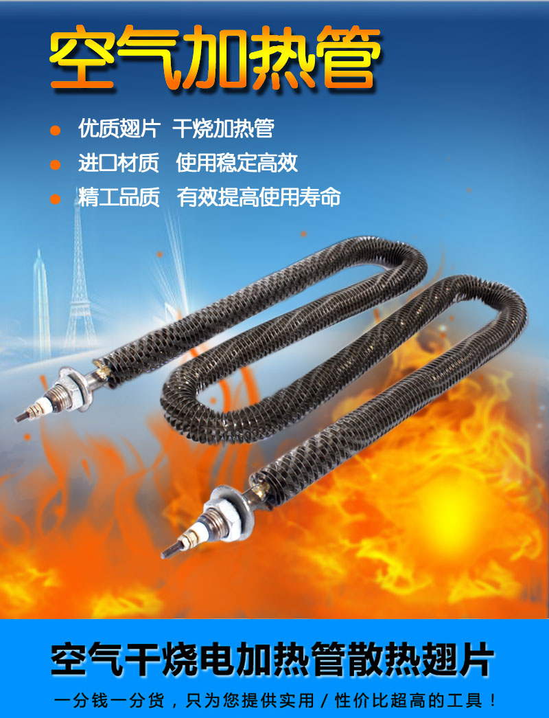 翅片電加熱管適用于烘箱、烘道加熱,一般加熱介質(zhì)為空氣。