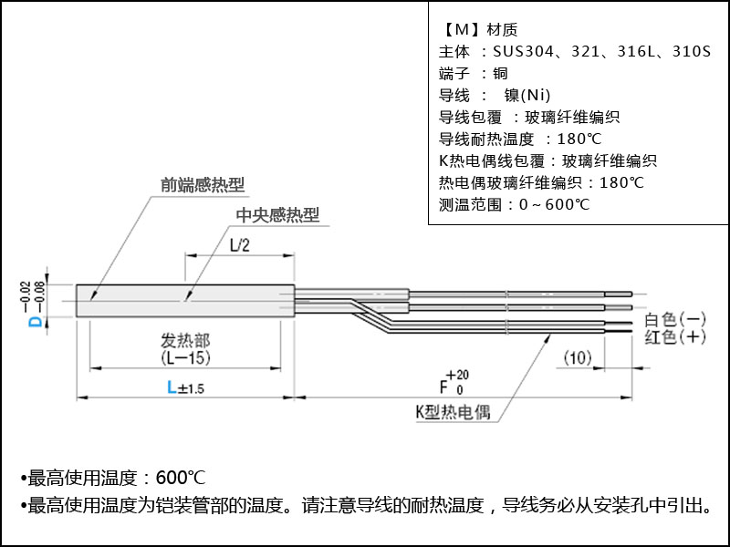 產(chǎn)品特點:帶傳感器型單頭電加熱管是內(nèi)置了K型熱電偶的產(chǎn)品,加熱器與溫度傳感器融為一體,使用時節(jié)省了空間,還可防止加熱器本身溫度上升過高,準確控制溫度。