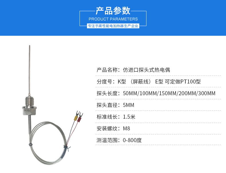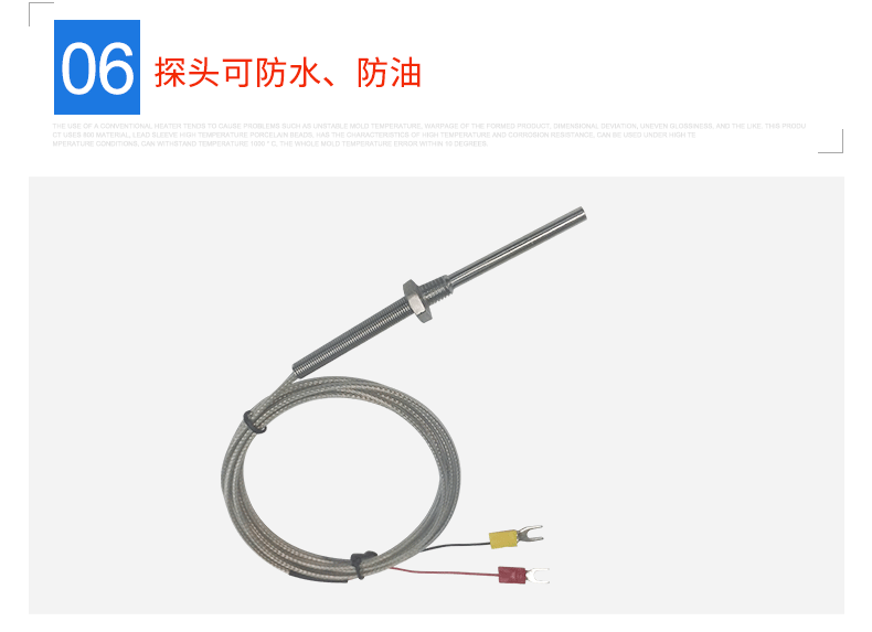 M8螺牙式熱電偶特點:探頭已做密封!可防水防油!管的材料是304#不銹鋼!