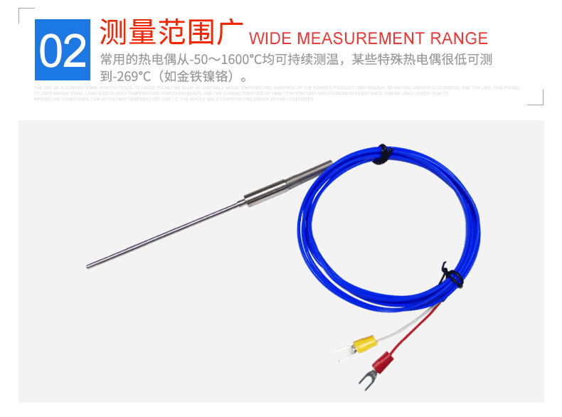 ② 測量范圍廣 常用的熱電偶從-50~1600℃均可持續(xù)測溫,某些特殊熱電偶最低可測到-269℃(如金鐵鎳鉻)